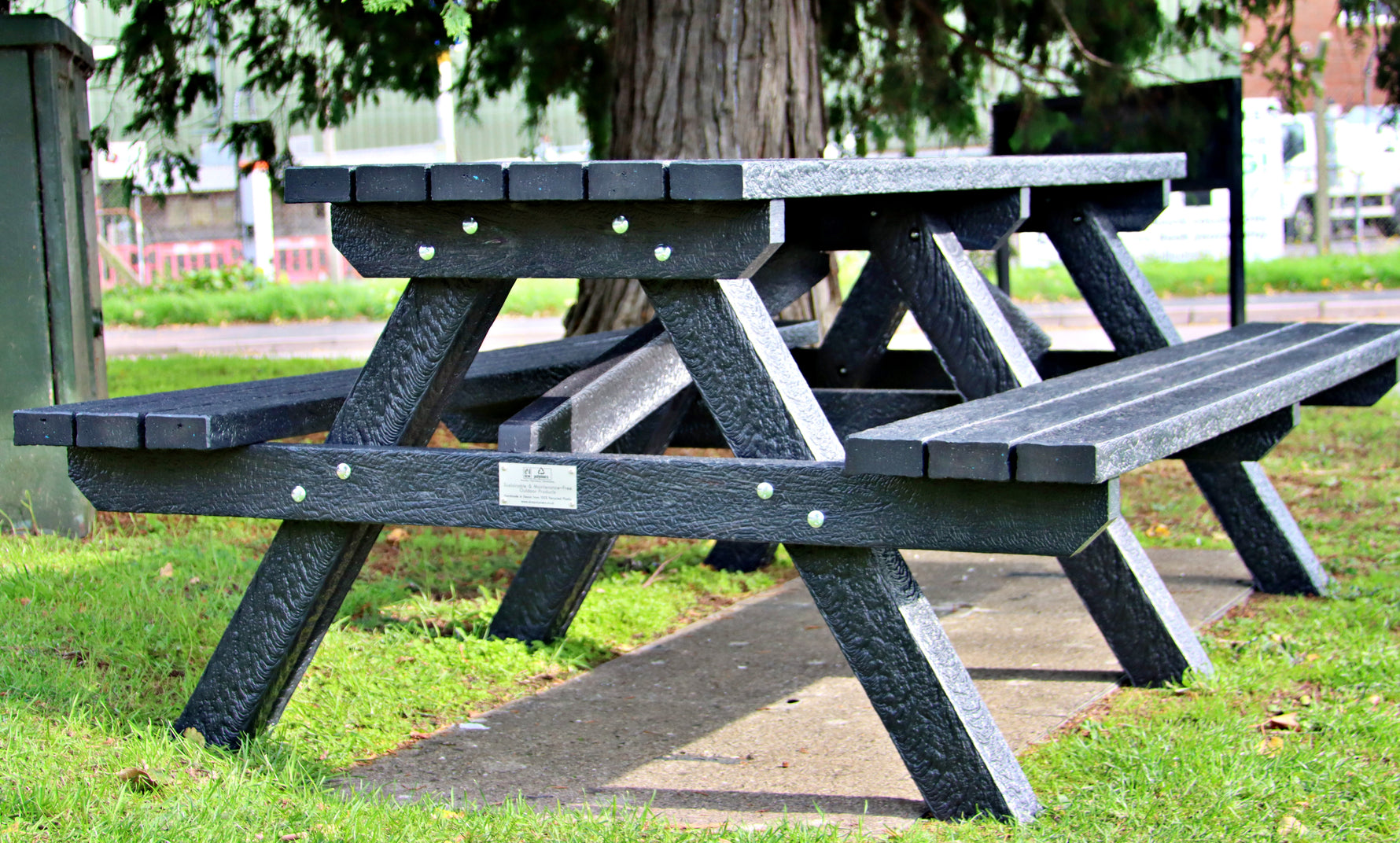 Our 7ft Plymouth Maintenance-Free Garden Picnic Bench Table is manufactured with strong, solid planks making it an ideal bench for any public setting.